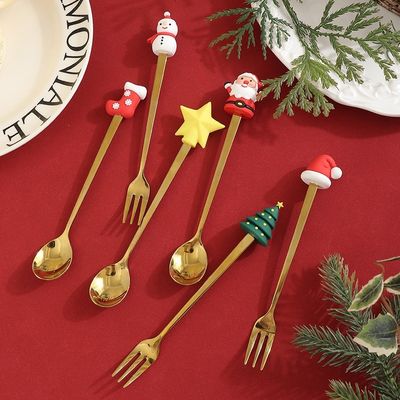 Özel Uzun Saplı Silikon Noel Kaşık ve Çatal Seti – Gıda Sınıfı Silikon + 304 Paslanmaz Çelik | Çocuklar ve Yetişkinler İçin Tatil Karikatür Çatal Bıçak Takımı